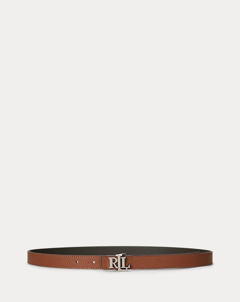 Reversible Skinny Leather Logo Belt