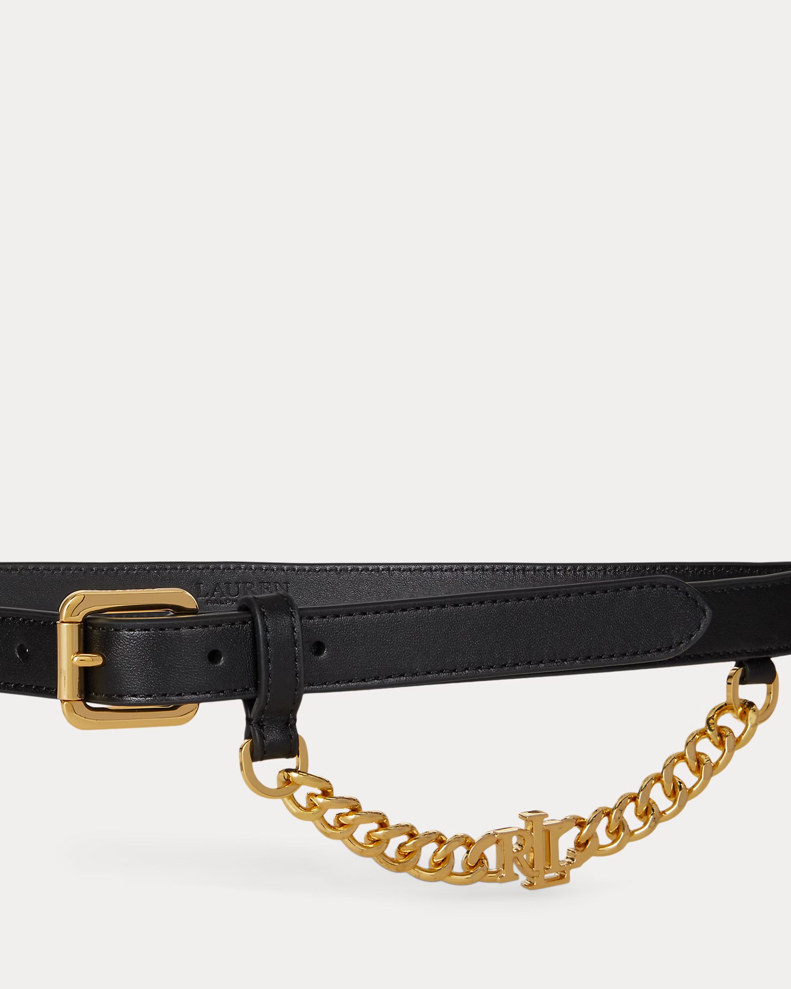 Logo-Chain Leather Skinny Belt