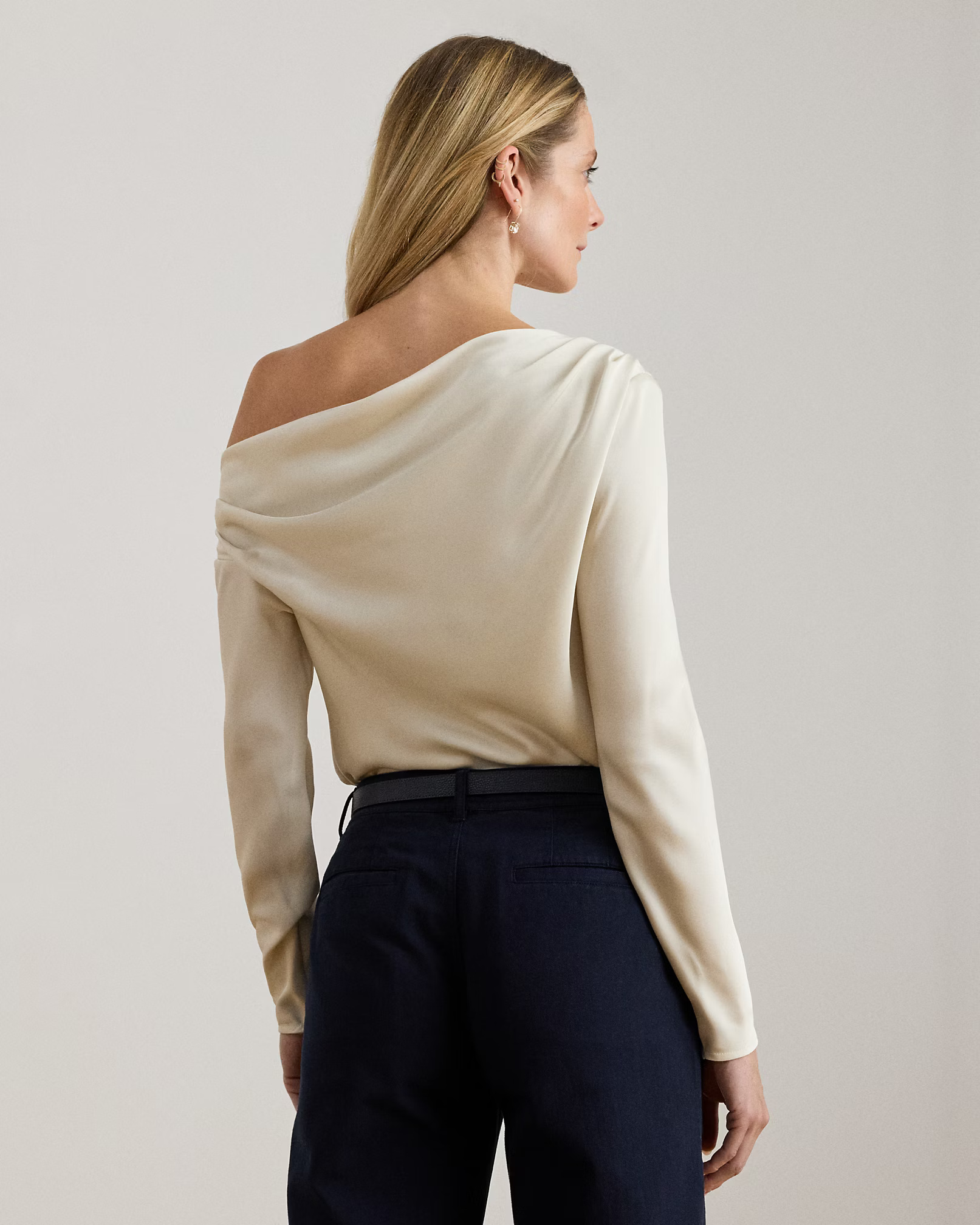 Satin Charmeuse Off-the-Shoulder Blouse