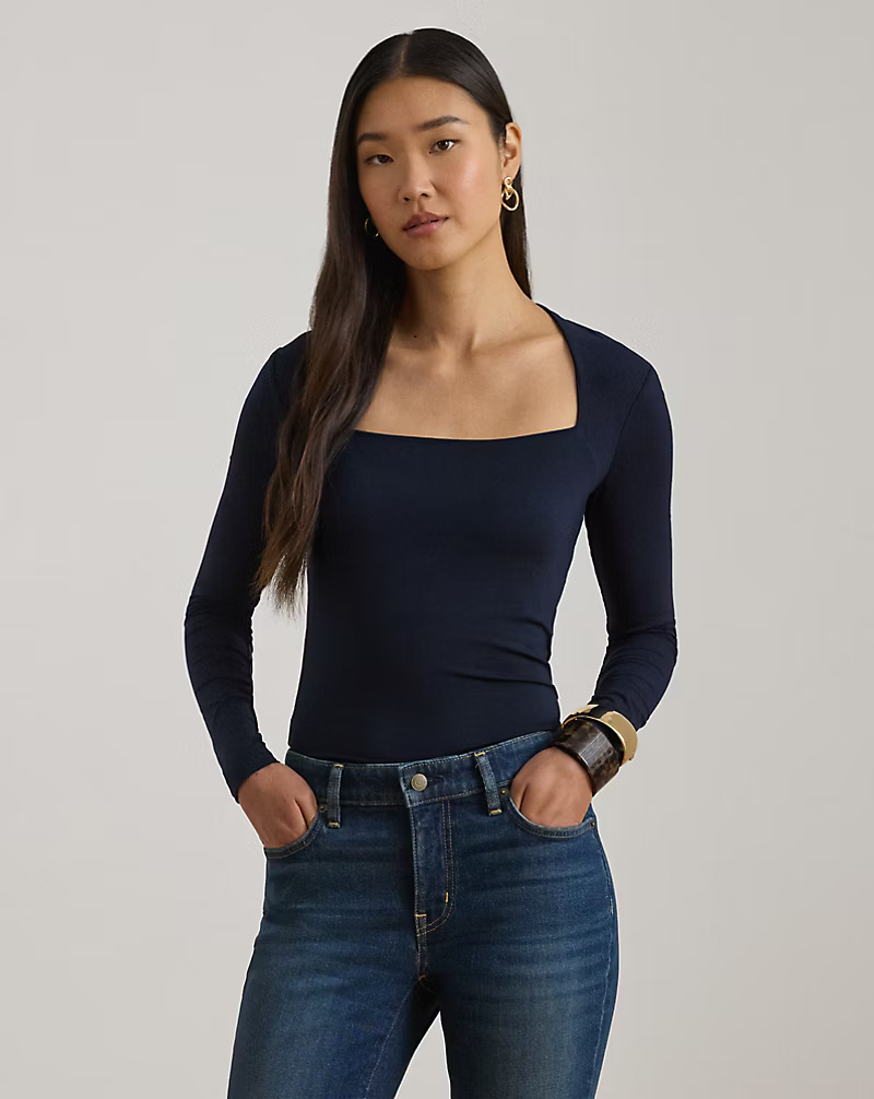 Stretch Jersey Square-Neck Top