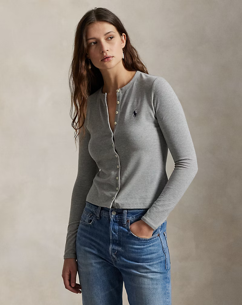 Stretch Mesh Cotton Crewneck Cardigan