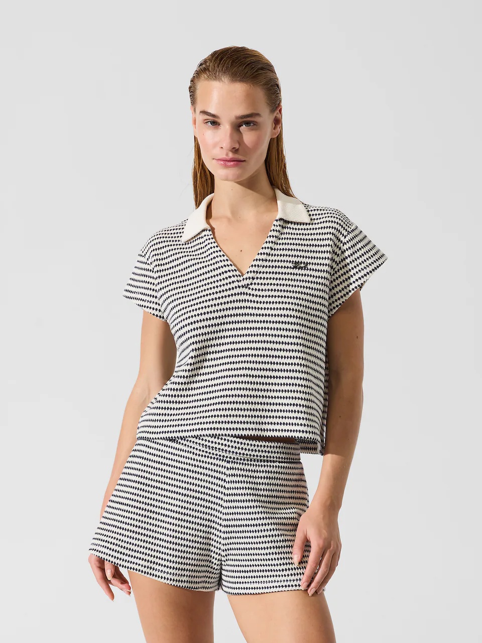 Crochet Striped Polo Top